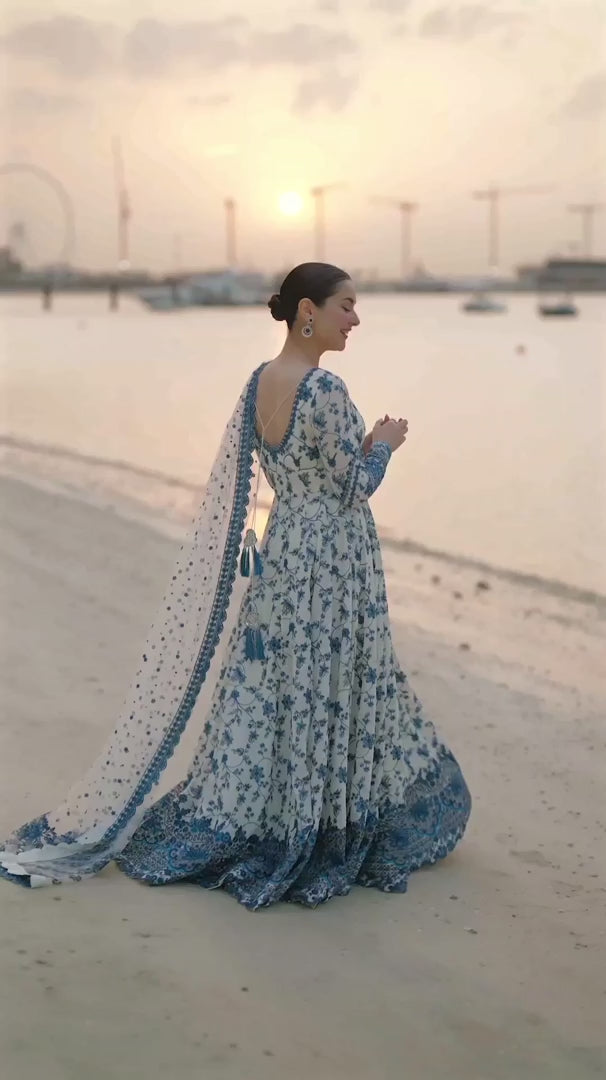 Echoing the serenity of coastal evenings and modern grace, Jehona embodies effortless elegance. Rendered in refreshing shades of blue and white, the lawn shirt is delicately embellished with meticulously crafted embroideries. Finished with a coordinated bottom and a flowing net dupatta, this ensemble puts you in the spotlight every time.