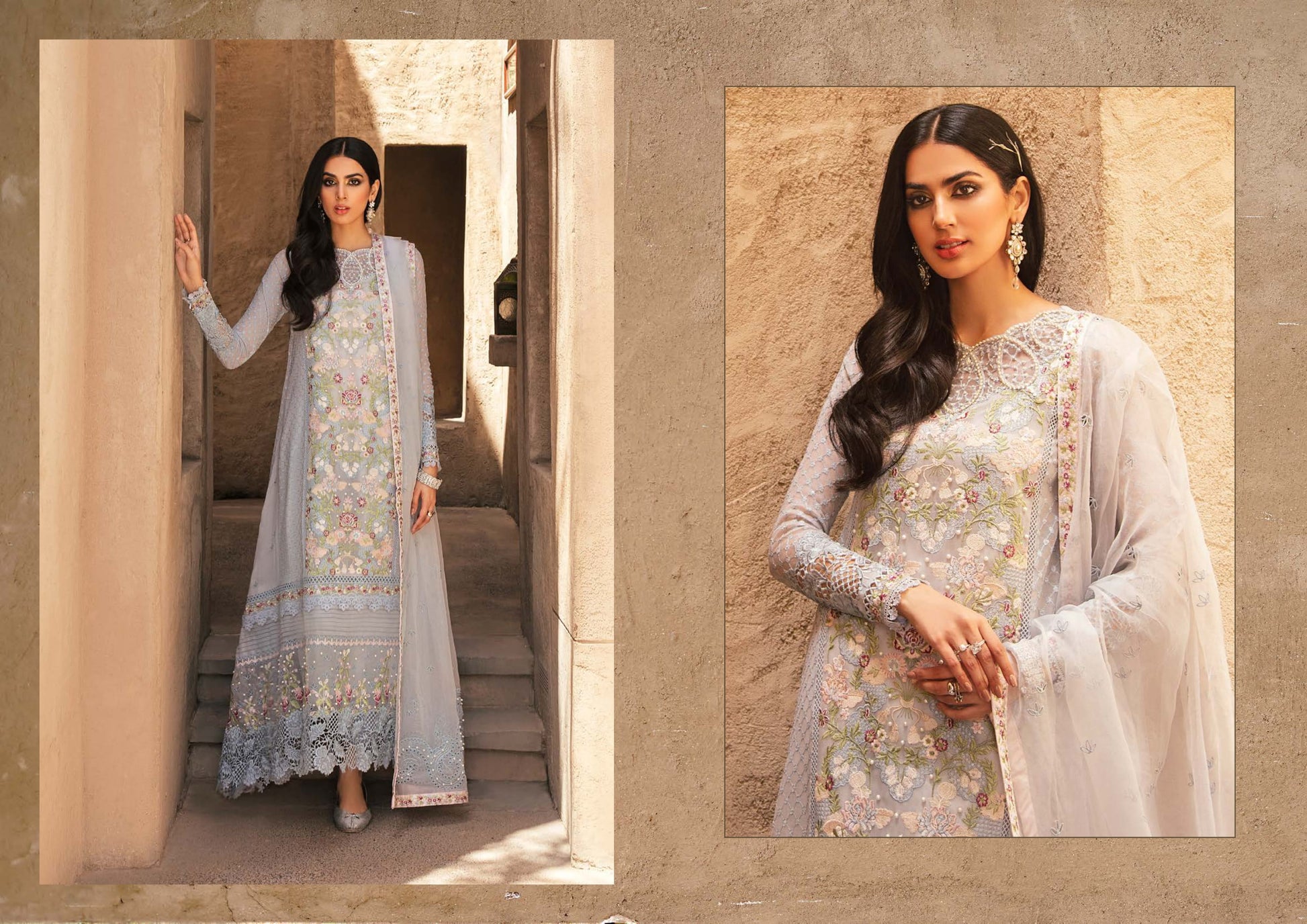 • Floral embroidered organza patti for border and sleeves
