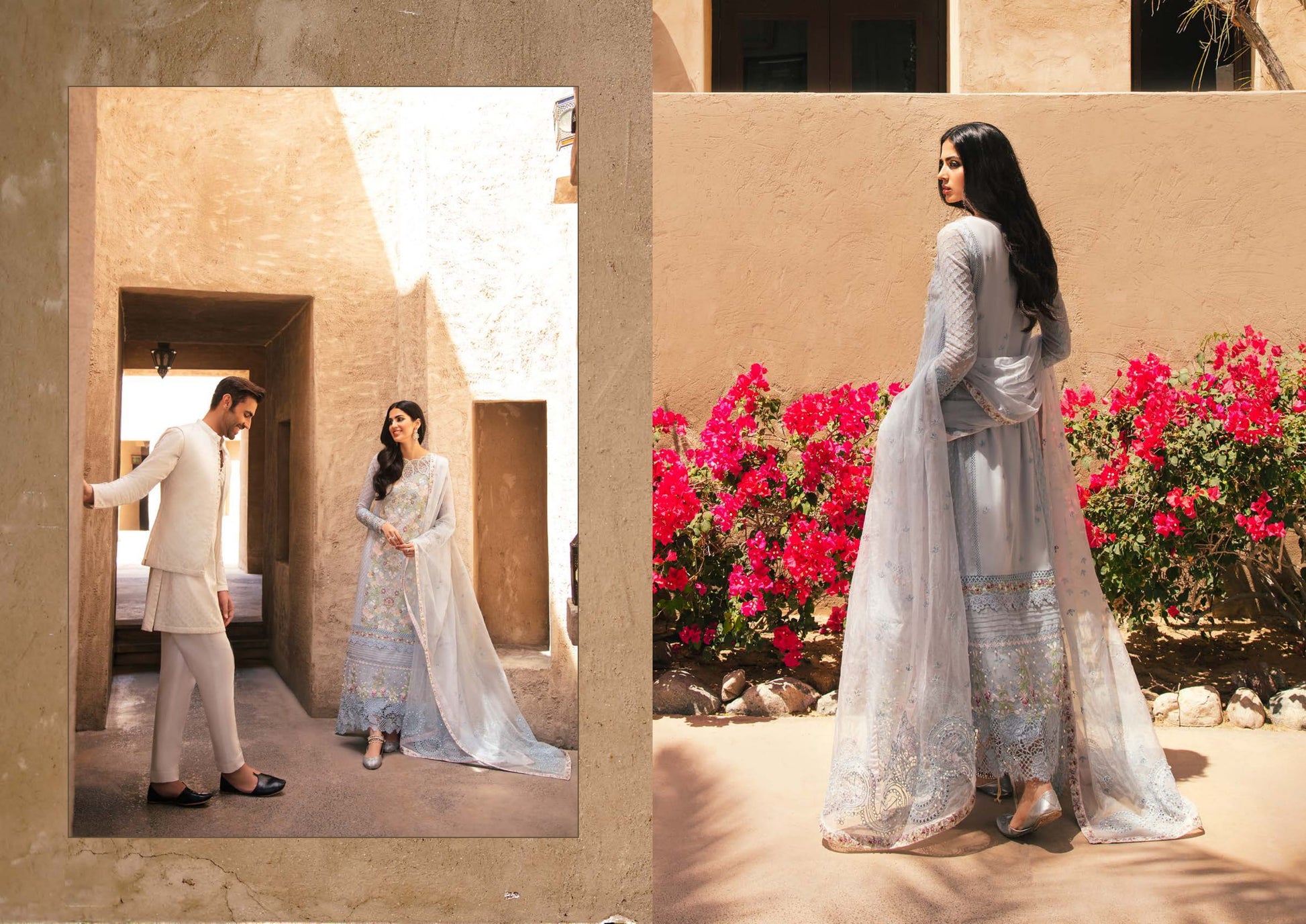 • Sequin embroidered and pearl embellished front panel on cotton net