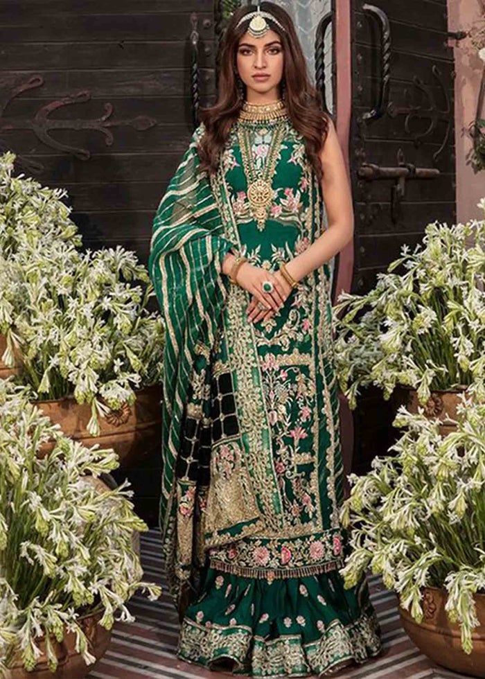 • 2 Sequined, Embroidered and Marori worked Front Panels on Organza