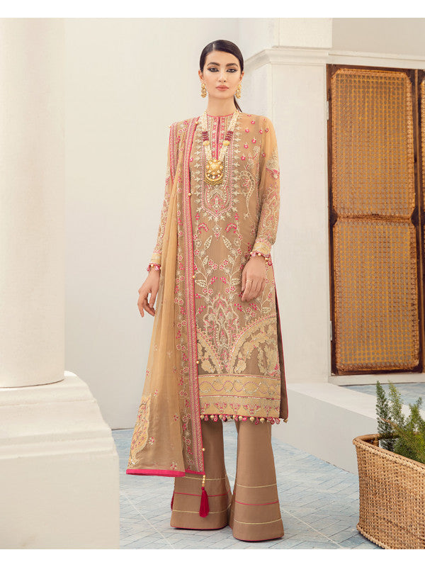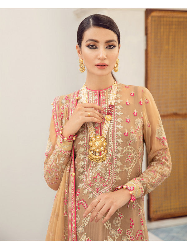 Embroidered chiffon side panelEmbroidered chiffon sleevesEmbroidered chiffon backEmbroidered chiffon dupattaEmbroidered & sequined silk motifs for dupattaEmbroidered & sequined silk motifs for frontEmbroidered & sequined silk border for frontEmbroidered & sequined silk border for backEmbroidered & sequined silk border for sleevesDyed inner shirt liningDyed raw silk trouser