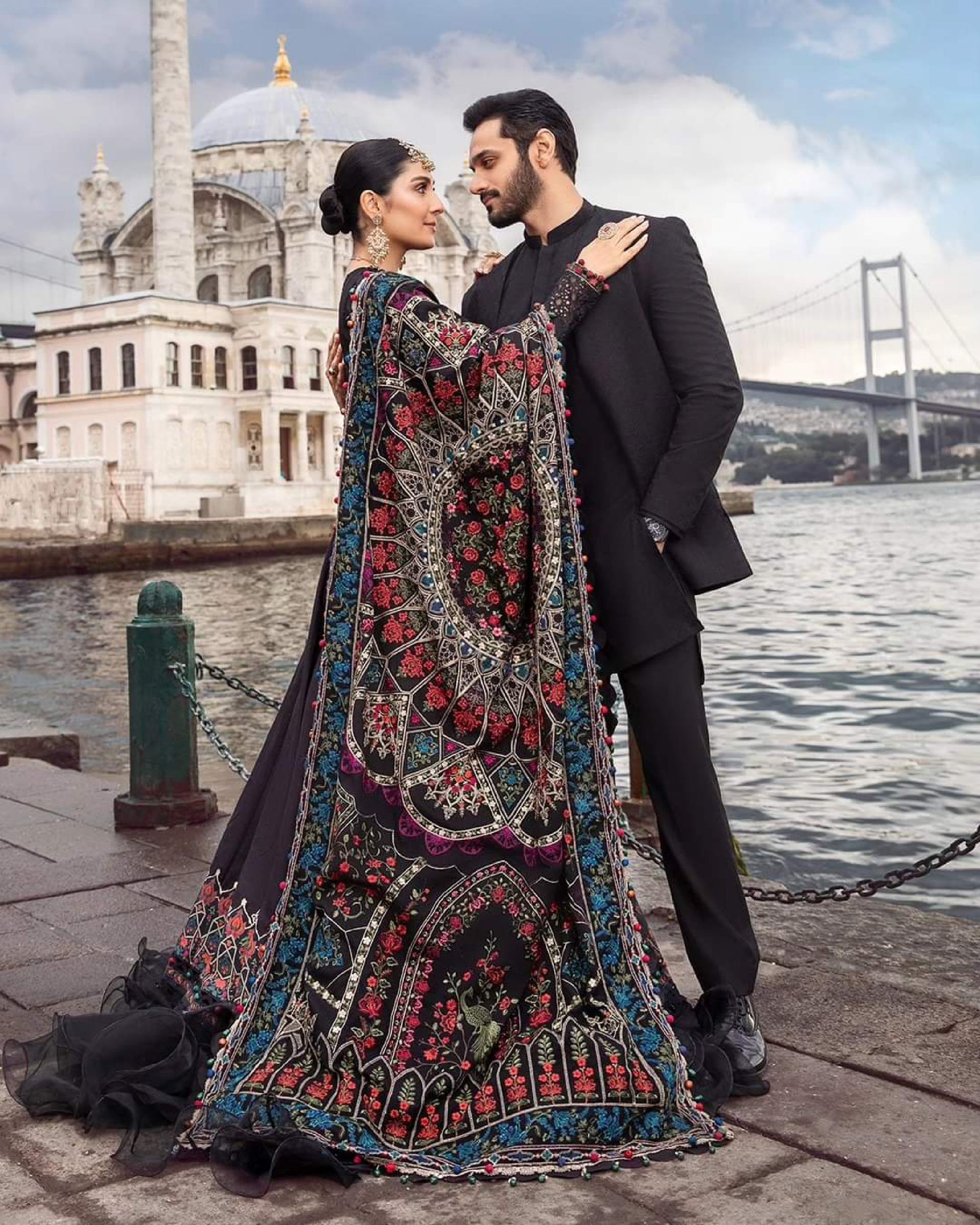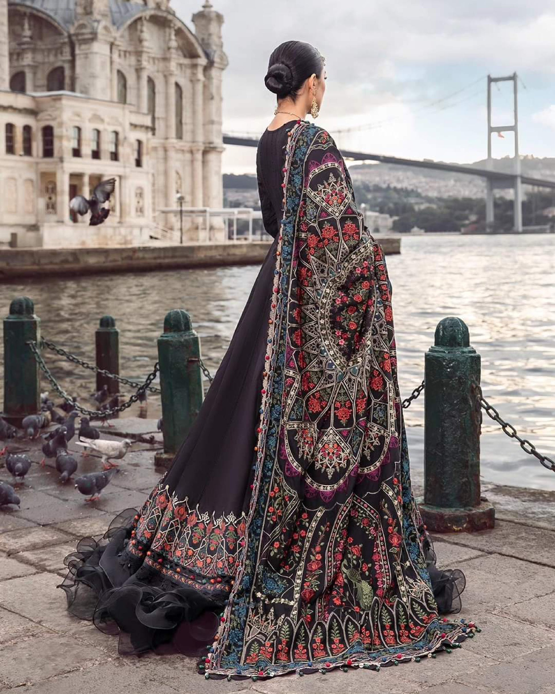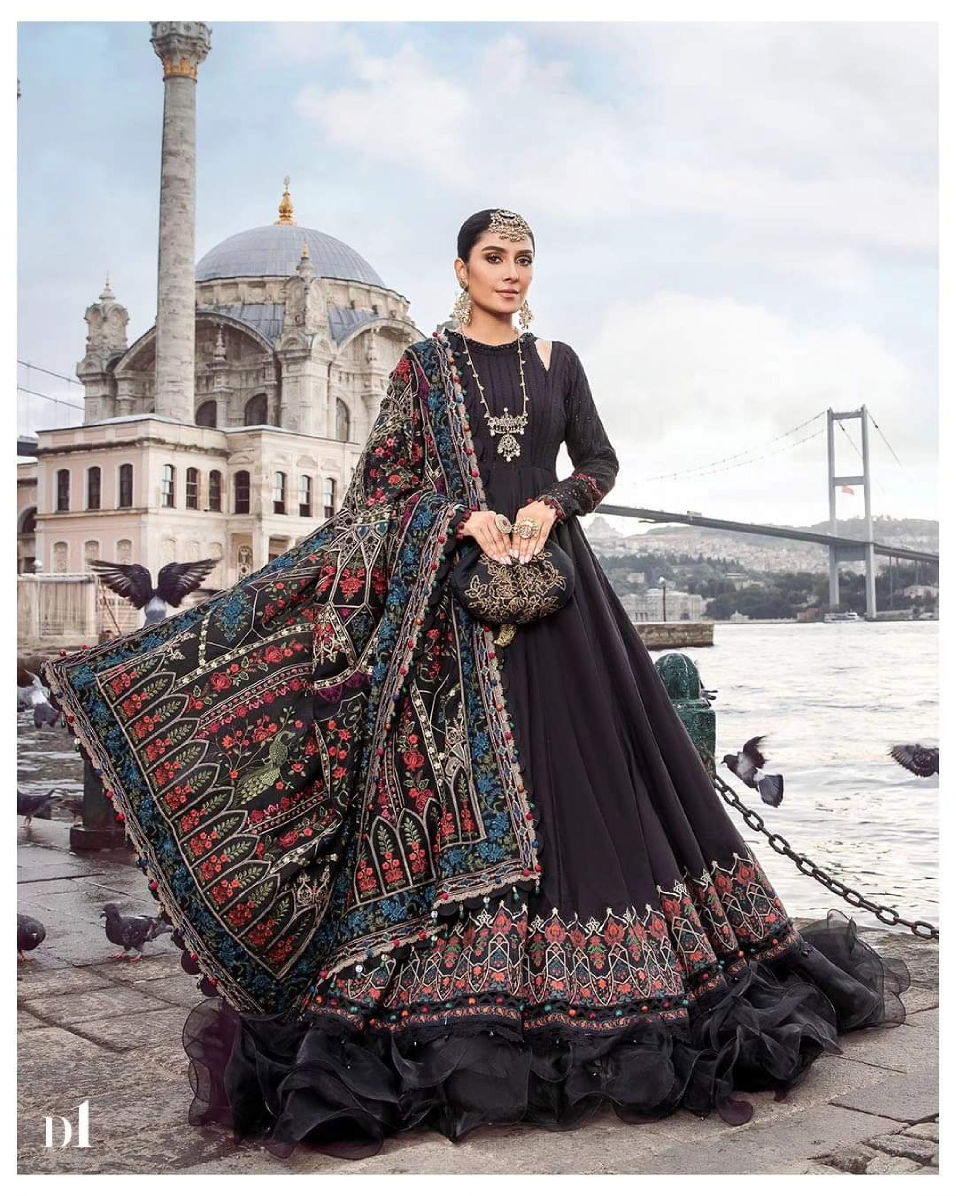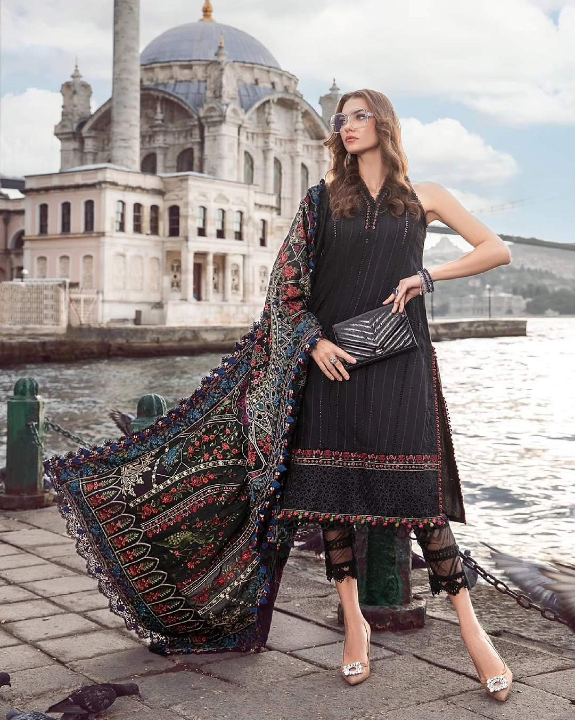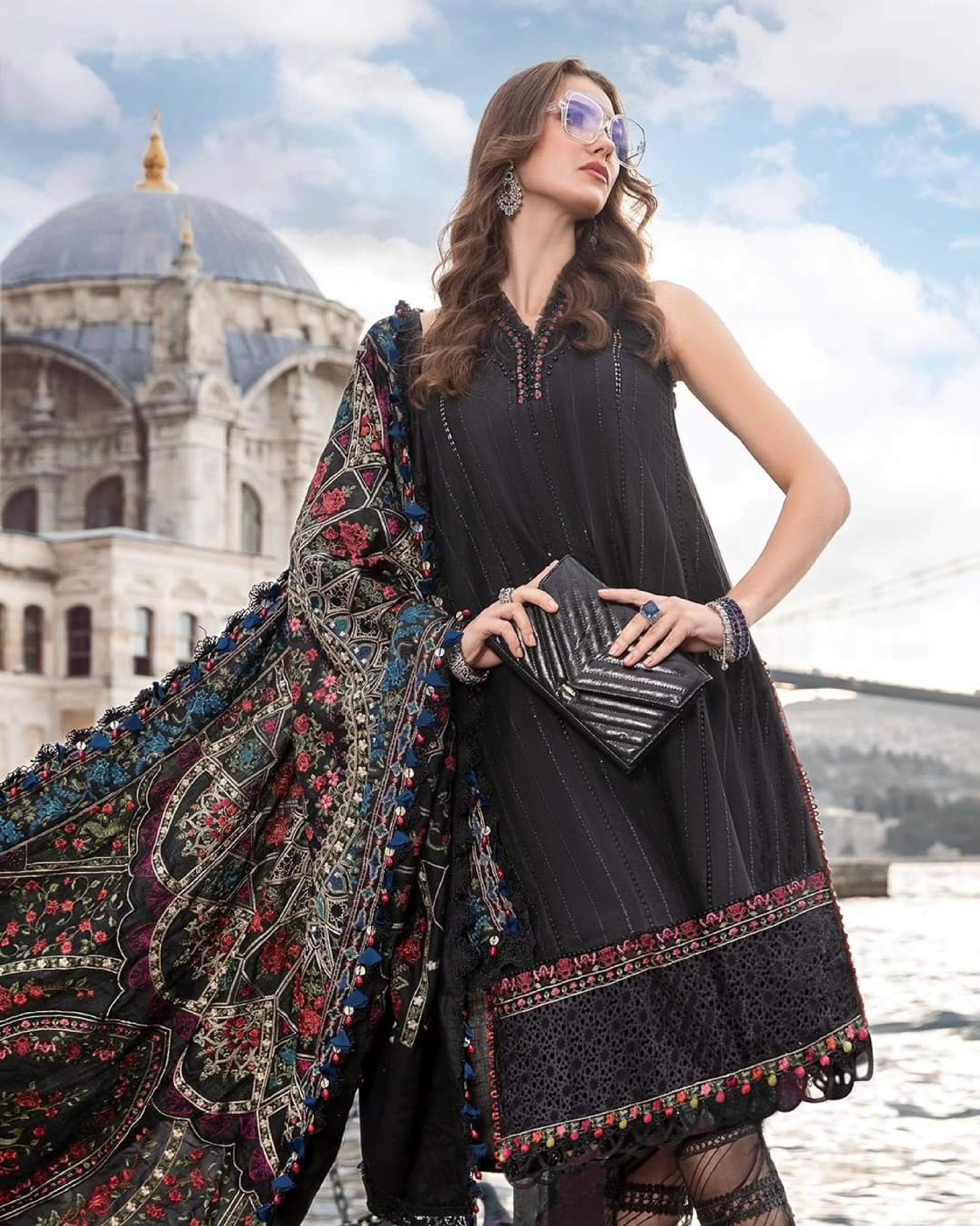 This dress is a testament of grace, featuring a dyed embroidered shirt crafted in luxurious twill linen with embroidered shawl and dyed trousers.