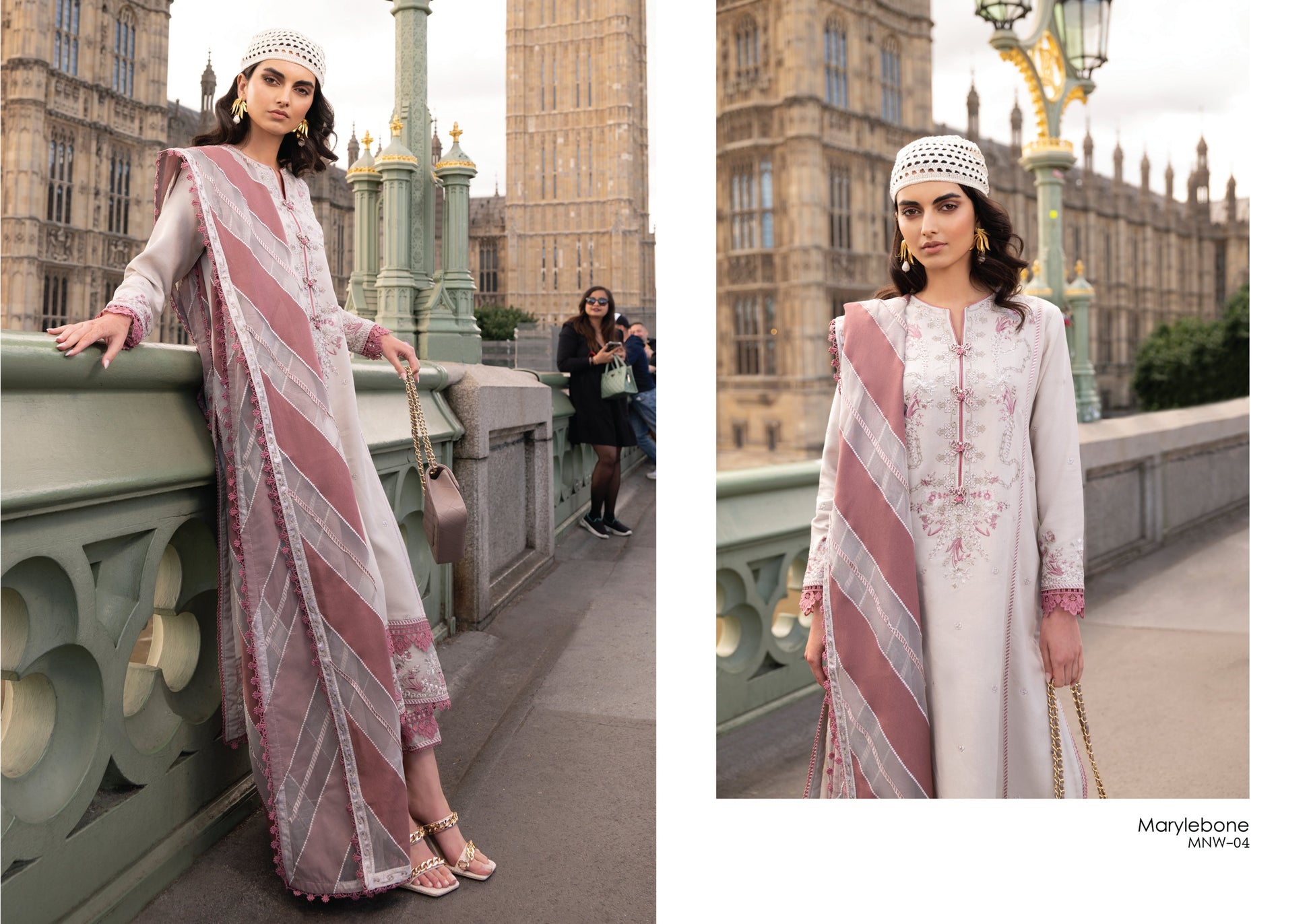 Radiate glamour with our "Marylebone" ensemble, a celebration of opulence and sophistication. The sequin embroidered karandi shirt steals the spotlight, shimmering with every movement, promising an evening filled with elegance and grace. Paired with meticulously embroidered trousers and a chatta patti shawl, the outfit achieves a perfect balance of flair and finesse.Package Details: