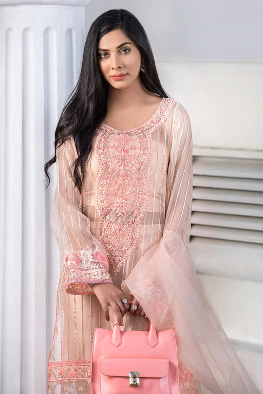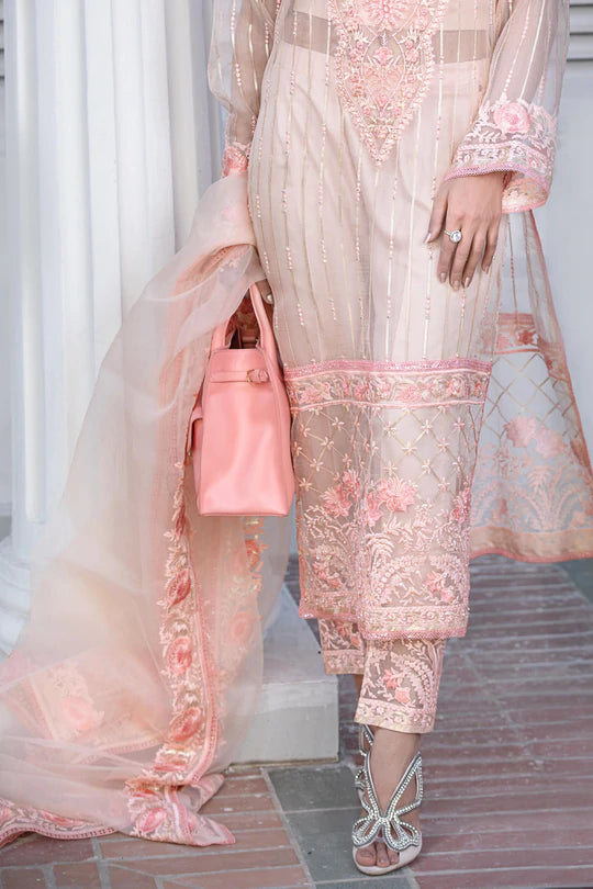 PURE ORGANZA SHIRTEmbroidered Shirt1.8 MEmbroidered Border Front and Back1.5 MEmbroidered And Embellished Neckline0.35 MEmbroidered Sleeves0.5 MEmbroidered & Embellished Sleeves Border0.75 MPURE ORGANZA DUPATTAEmbroidered Dupatta with Border4.5 MTROUSERRaw Silk Trouser2.31 MEmbroidered Organza Border1.23 MThai Silk Slip2.7 M