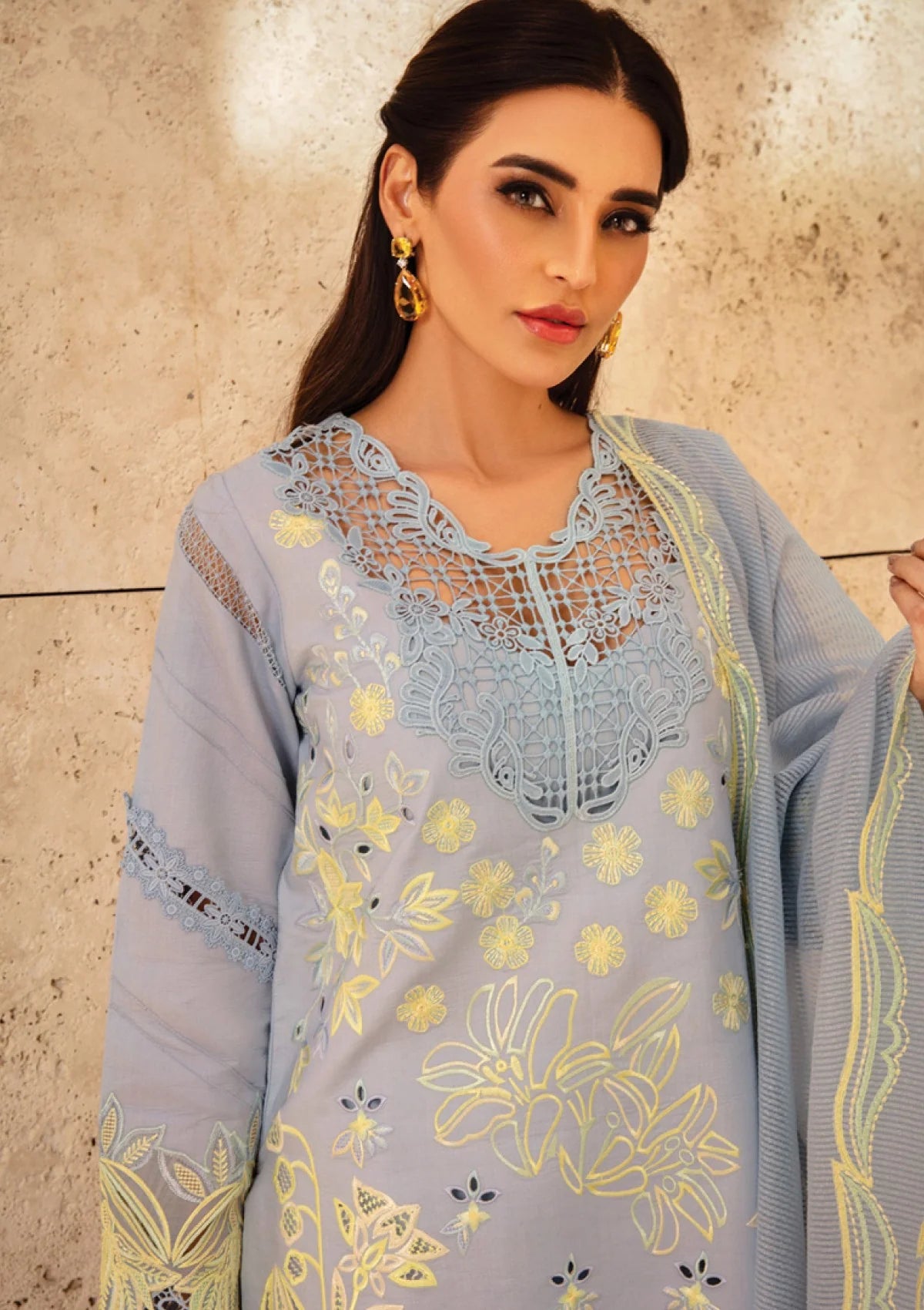 - DYED LAWN LASER CUT EMBROIDERED FRONT 46 INCHES