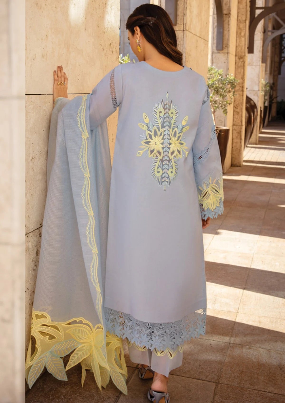 - DYED ORGANZA EMBROIDERED BACK MOTIF 01 PIECE