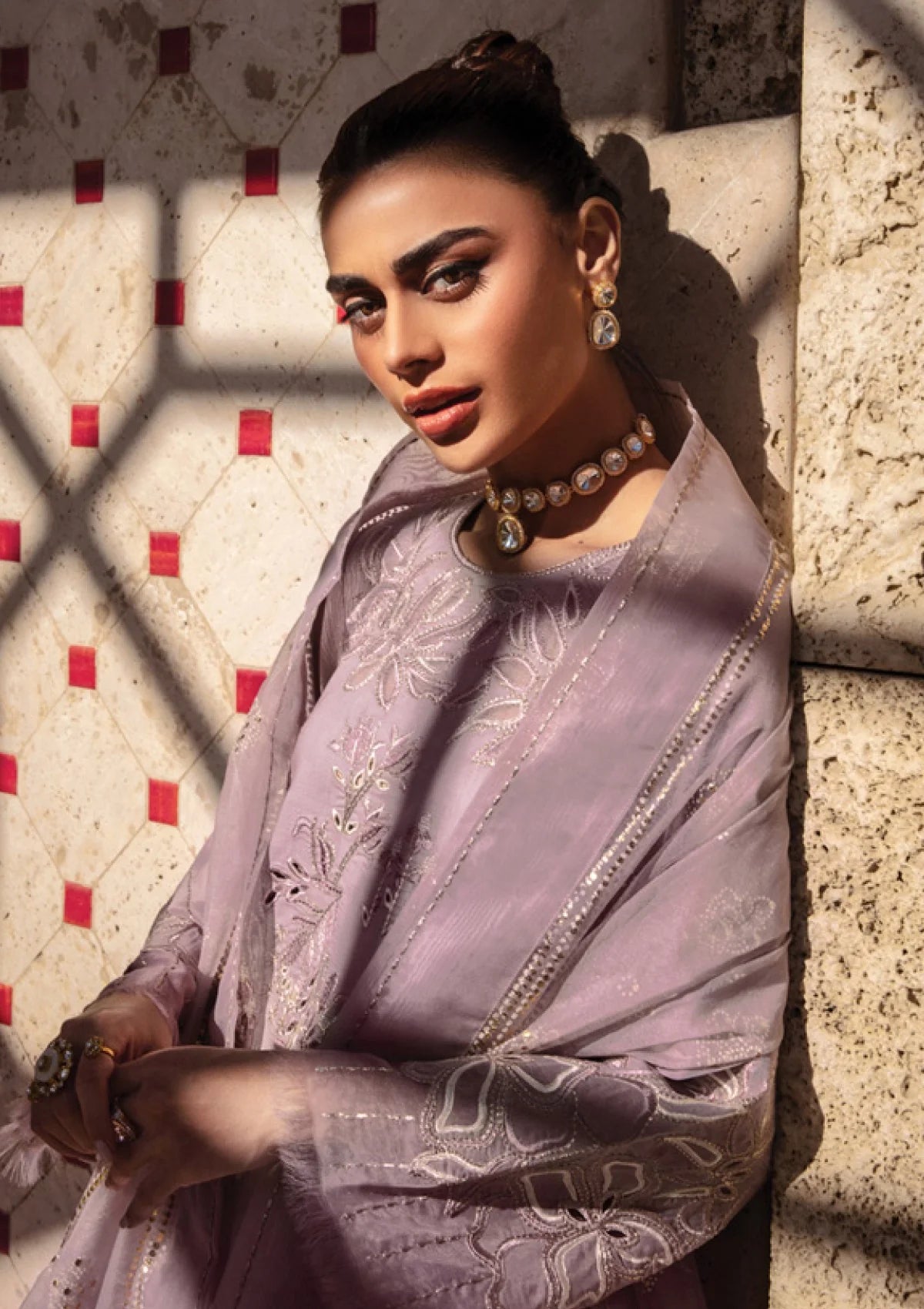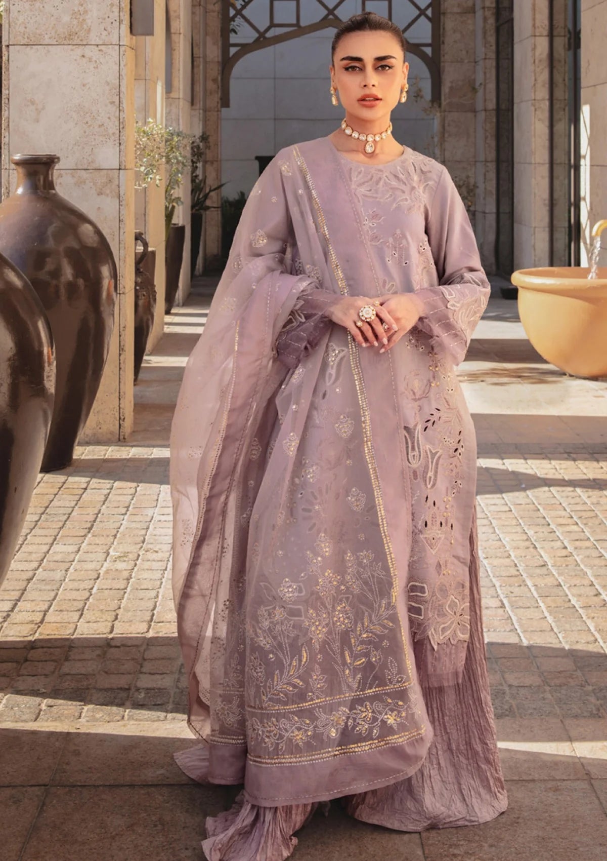 - DYED LAWN LASER CUTWORK EMBROIDERED FRONT 48 INCHES