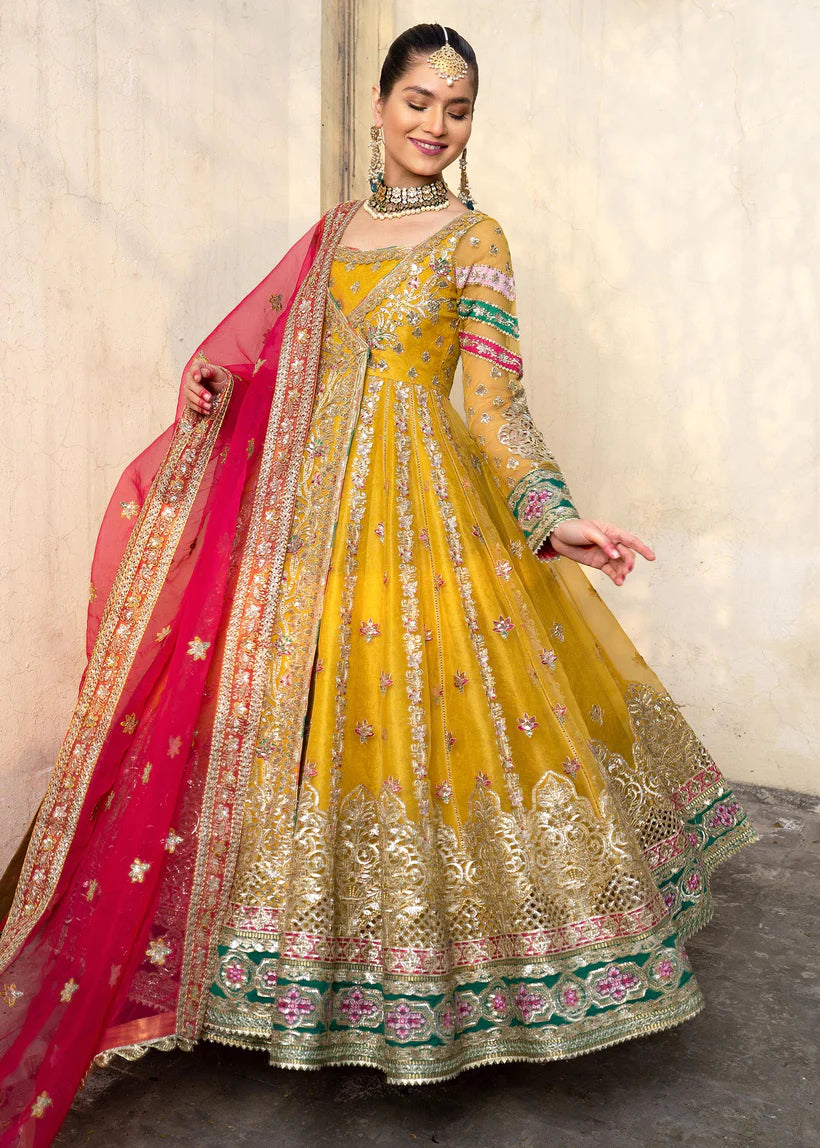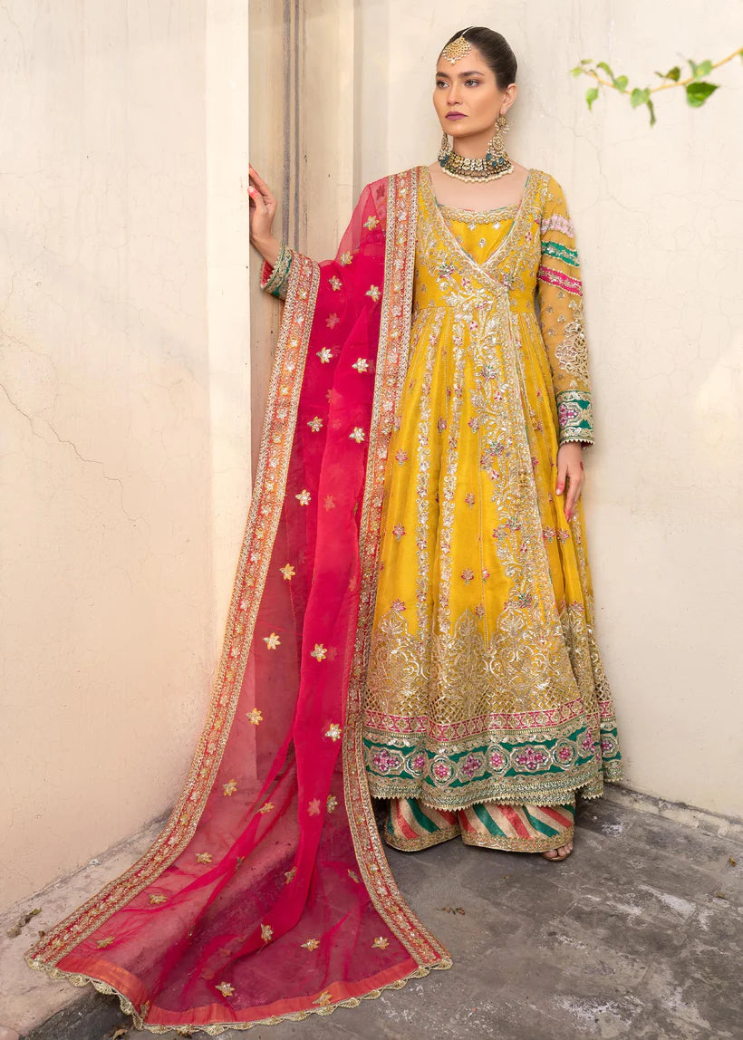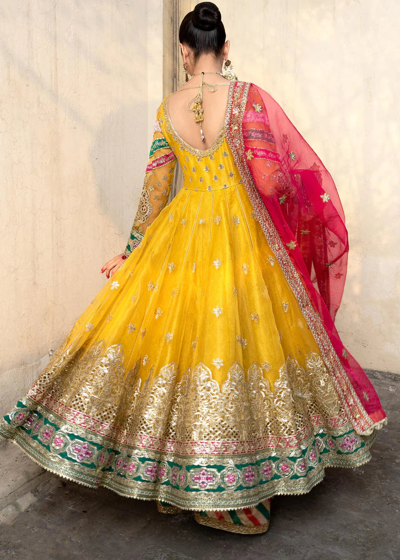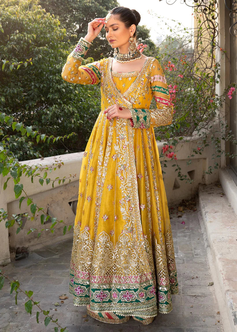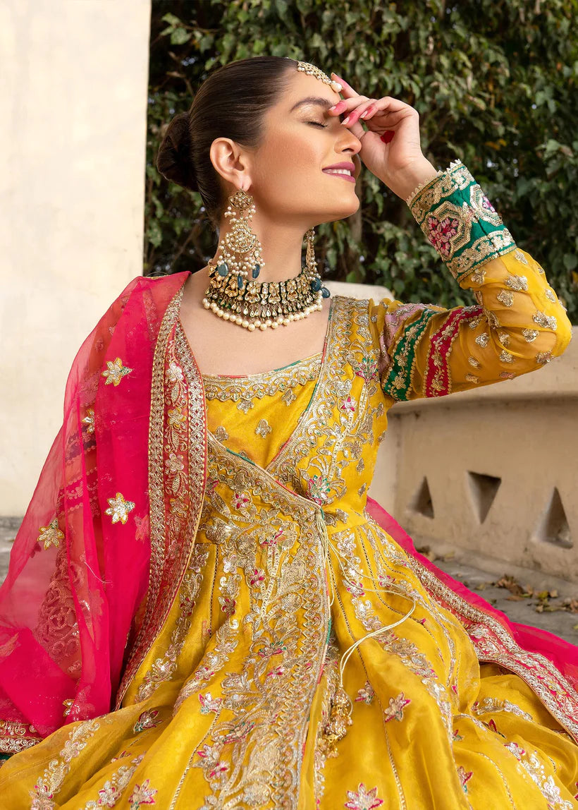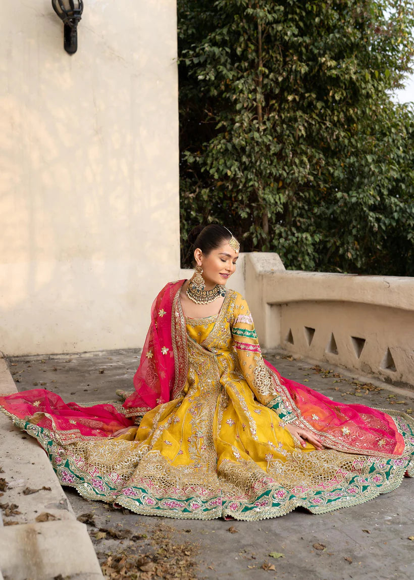 - Angrakha Embroidered Organza Front Kali Back Kali Sleeves Bodice.