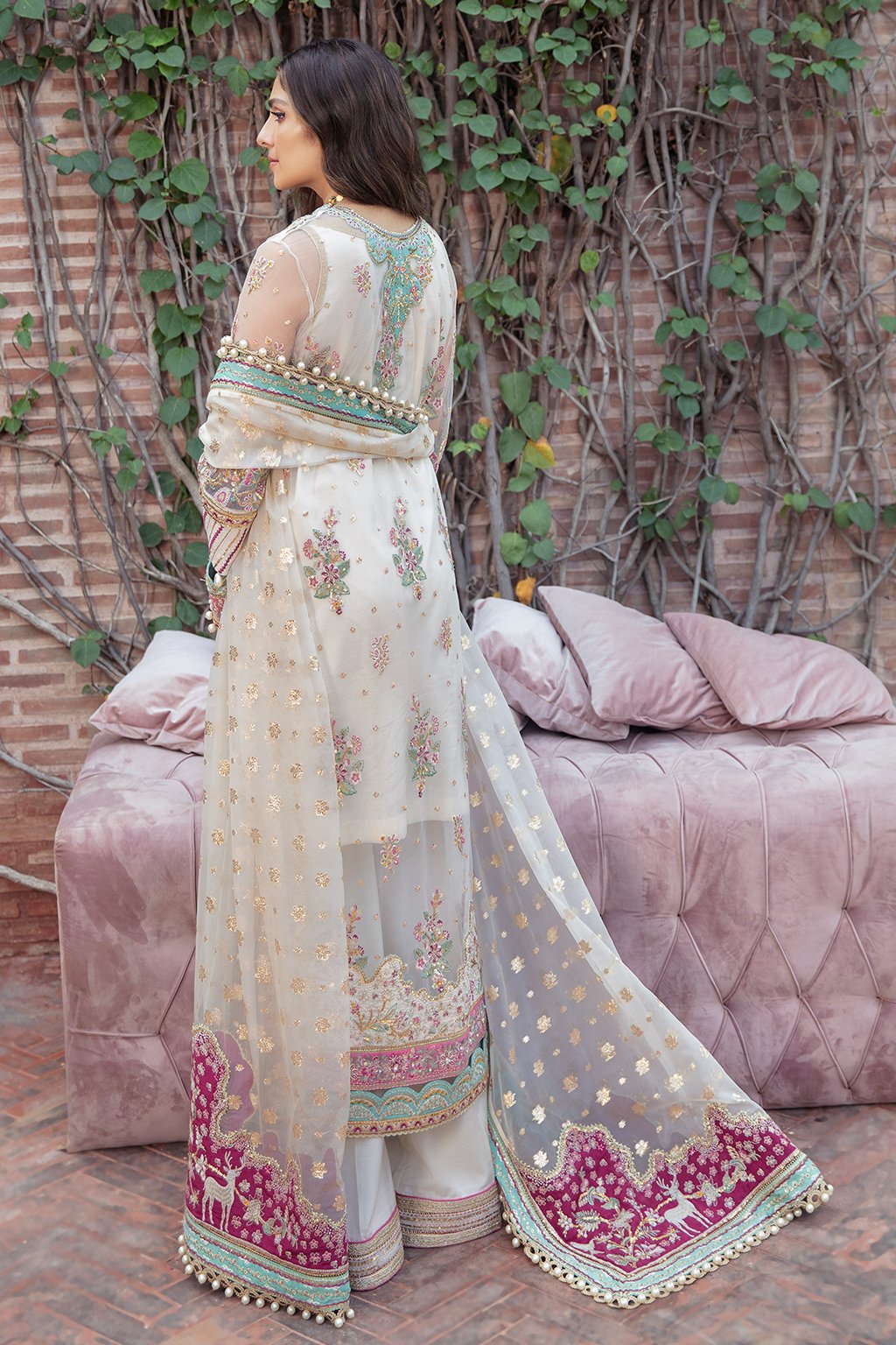 • EMBROIDERED BAMBER RAW SILK FRONT (HAND EMBELLISHED) / BACK DAMAN 2 PC